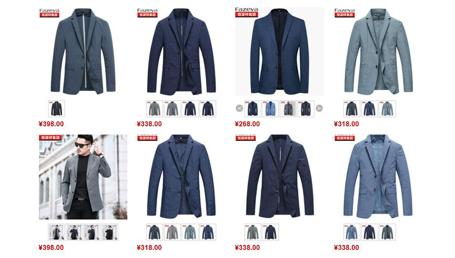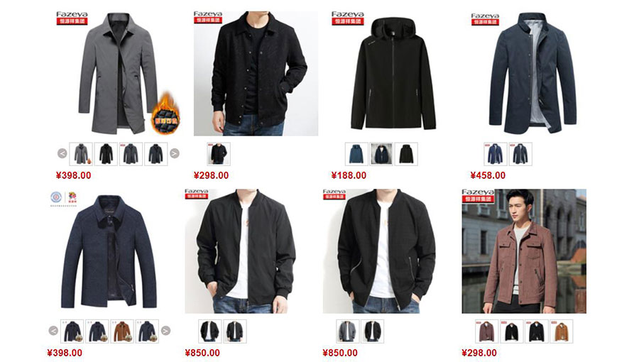 主要產(chǎn)品:Fazeya西服、夾克、褲子、襯衫、內(nèi)衣