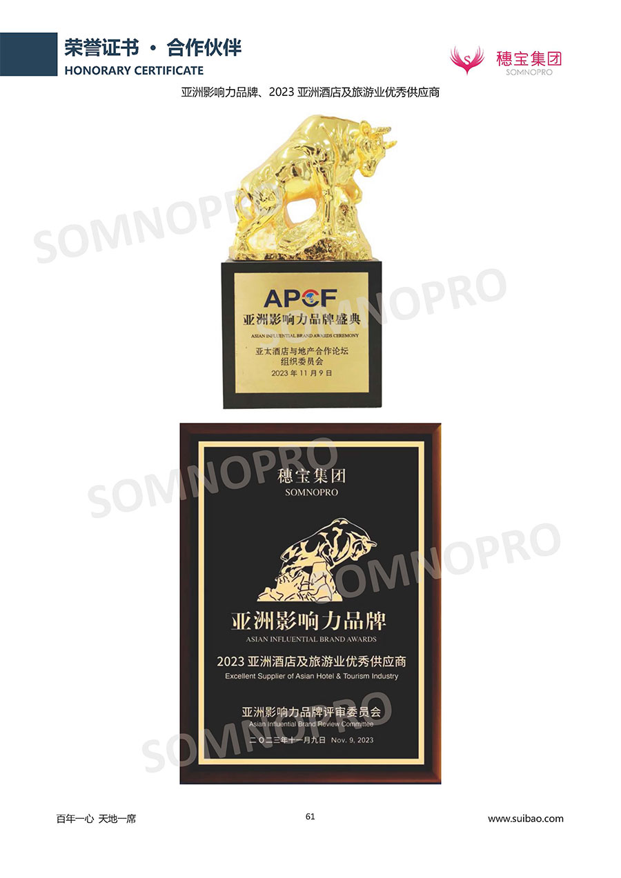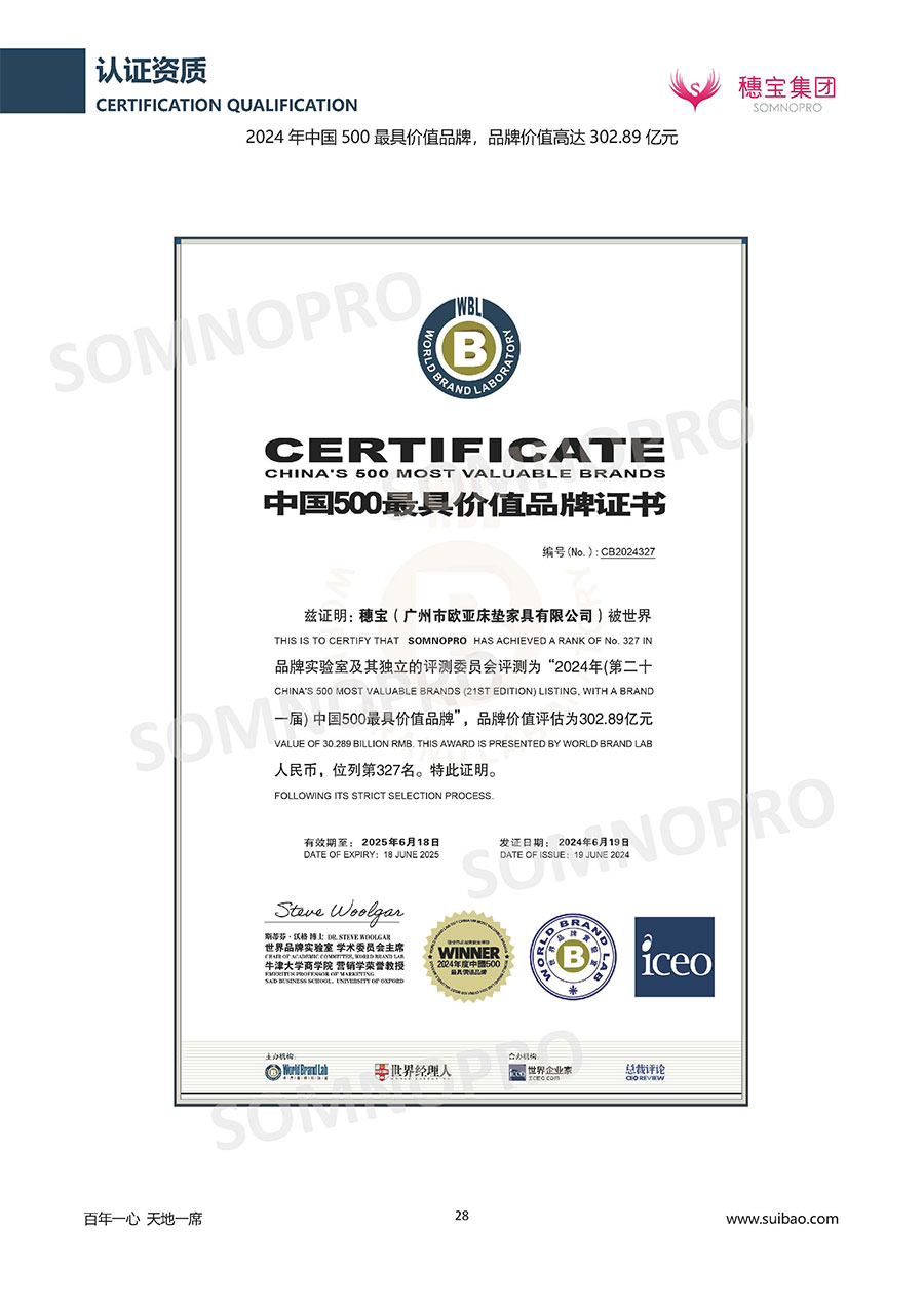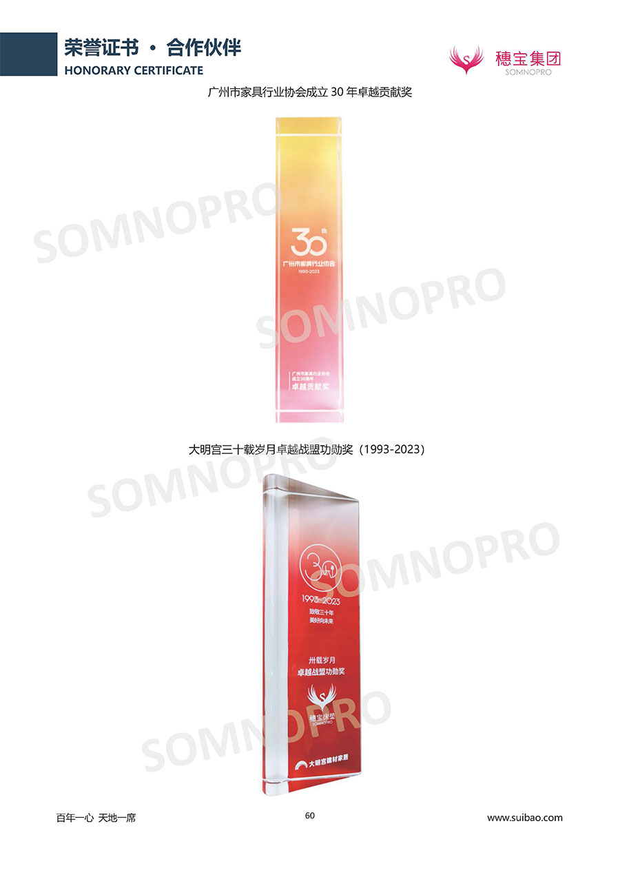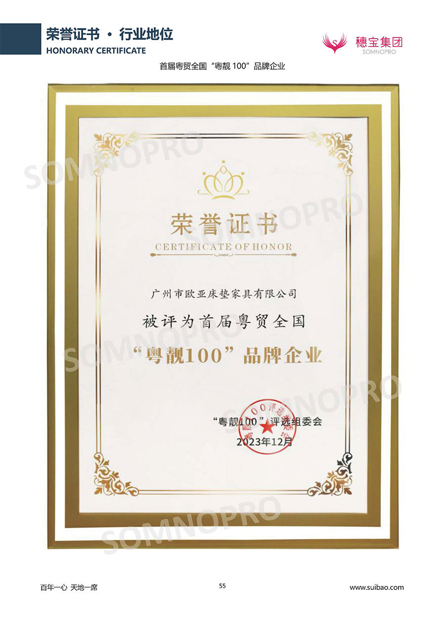 自1971年獨立研發(fā)生產(chǎn)出專屬國人的彈簧床墊,穗寶關(guān)于優(yōu)質(zhì)深度睡眠的研究已有半個世紀(jì)的歷史。穗寶一直專注床墊,專注中國消費者的睡眠研究,針對中國人特點進行優(yōu)化創(chuàng)新,不斷提升國人的睡眠體驗,只為成就每個晚上8小時的優(yōu)質(zhì)深度睡眠。憑借不斷革新的研發(fā)科技和深受消費者信賴的產(chǎn)品品質(zhì),穗寶集團旗下品牌和產(chǎn)品屢獲國內(nèi)外大獎,連續(xù)20年榮膺中國500最具價值品牌,品牌價值高達302.89億元。