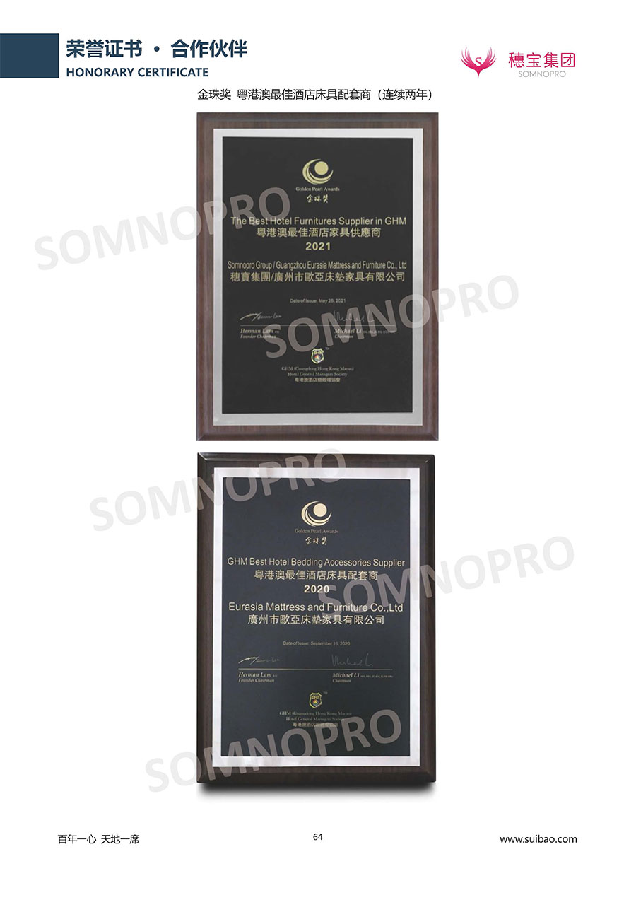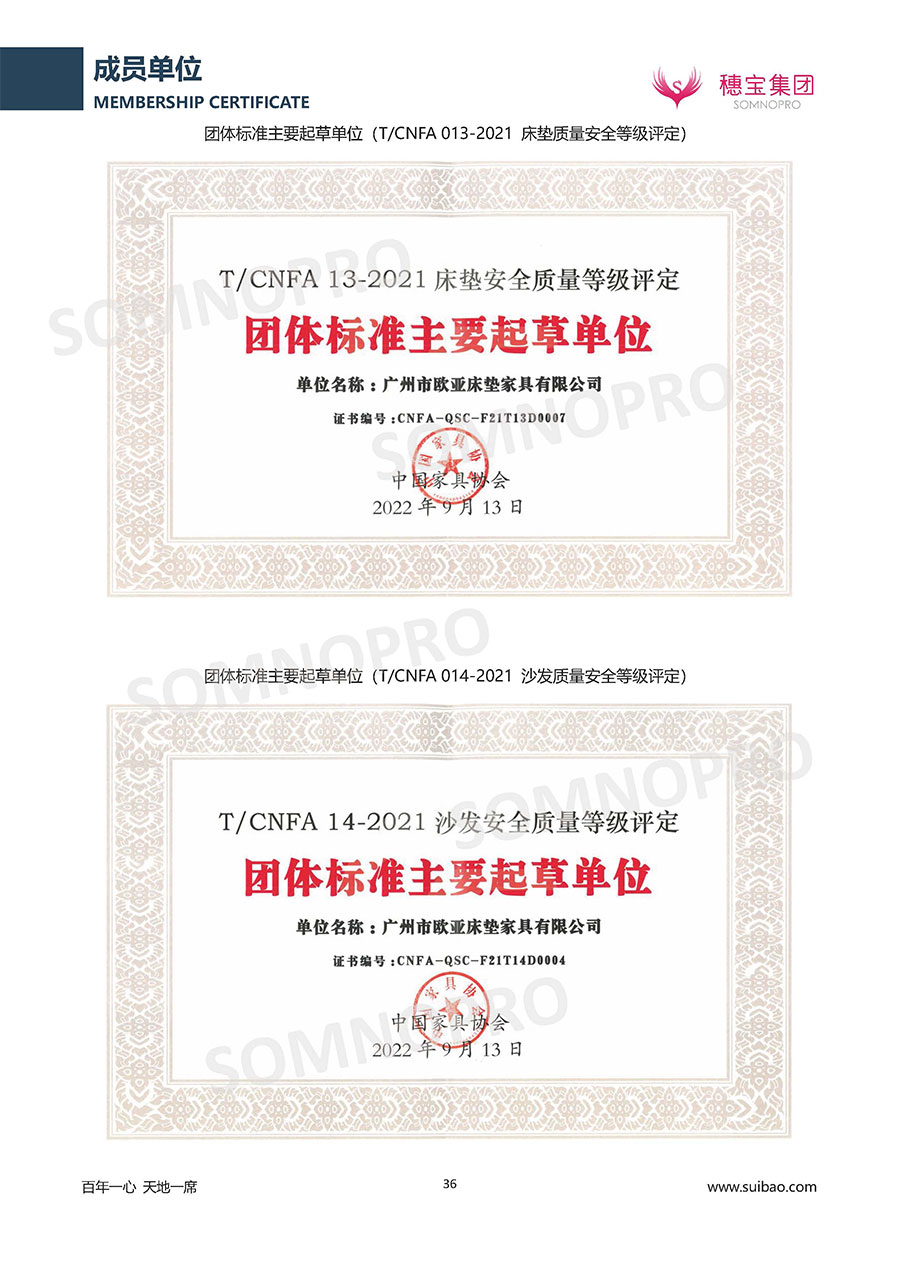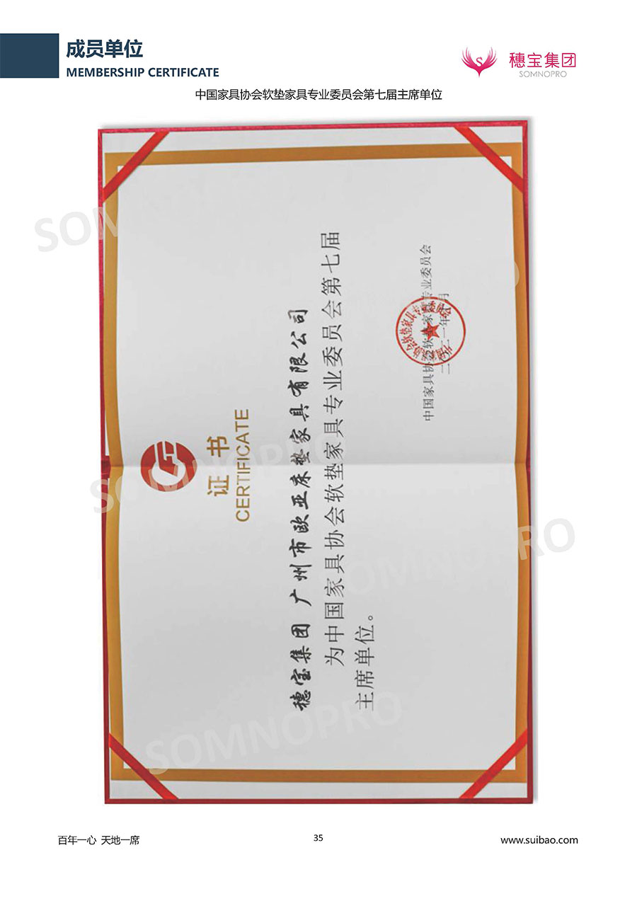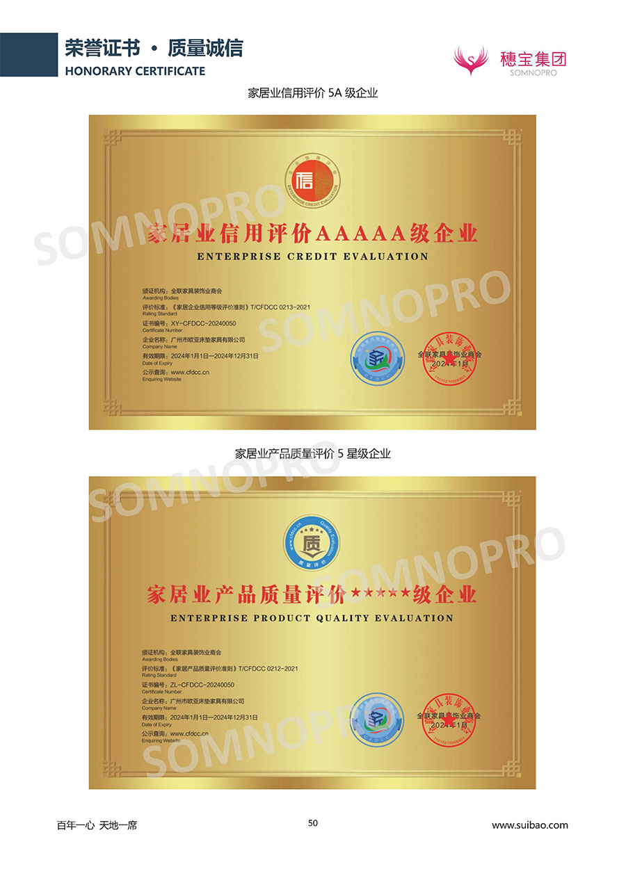 本著高品質(zhì)、高效率、重管理的原則,穗寶已通過ISO9001質(zhì)量管理體系認(rèn)證證書、ISO14001環(huán)境管理體系認(rèn)證證書、ISO45001職業(yè)健康安全管理體系認(rèn)證證書、中國環(huán)境標(biāo)志產(chǎn)品認(rèn)證證書、家居綠色環(huán)保領(lǐng)跑品牌、綠色正品家居品牌、企業(yè)標(biāo)準(zhǔn)“綠色領(lǐng)跑者”證書、CMS測量管理體系證書、CMS測量管理體系證書附件、廣東省“守信用重合同”企業(yè)、廣州歐亞-納稅信用A級納稅人(連續(xù)5年:2018-2022)、2024年中國500最具價值品牌,品牌價值高達302.89億元、廣東高價值商標(biāo)品牌(穗寶)、廣東省重點商標(biāo)保護名錄納入證明、廣州市勞動關(guān)系和諧企業(yè)AA級。穗寶自創(chuàng)立以來,不斷致力于新產(chǎn)品的設(shè)計與研發(fā),多次在國內(nèi)家具展會屢獲獎項,產(chǎn)品暢銷國內(nèi)外,深受客戶一致好評。