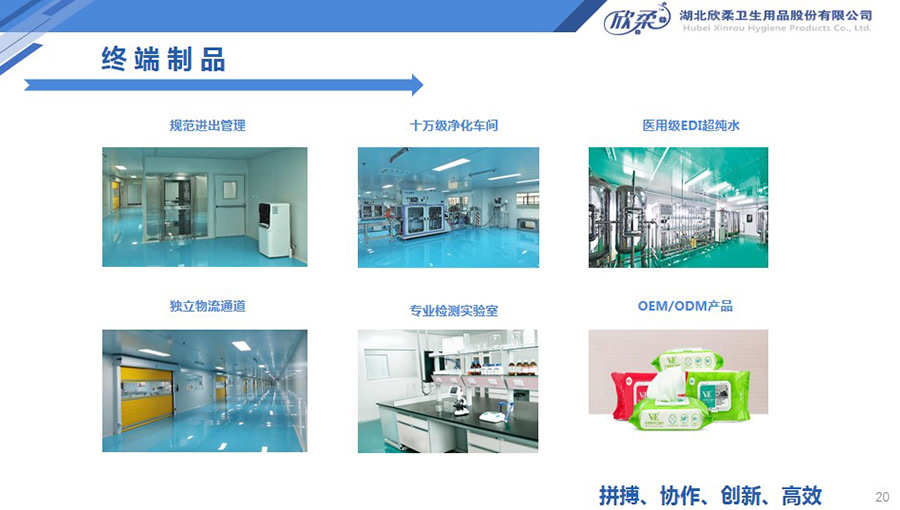 欣柔還建有終端制品生產(chǎn)線4條,具備日產(chǎn)消毒濕巾/濕廁巾9萬包、棉柔巾65萬包(卷)的生產(chǎn)能力。