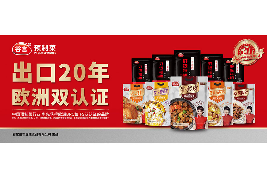 石家莊市惠康食品有限公司擁有谷言料理包、谷言家宴菜系列產(chǎn)品(谷言牛套皮、正定八大碗、酸菜魚、黃燜雞、火鍋雞、蜀山烤魚、京醬肉絲、宮保雞丁、菠蘿咕咾肉等)以及谷言牧場和牛肉、皇冠整切牛排、自熱產(chǎn)品、速食等八大系列,150多個產(chǎn)品。