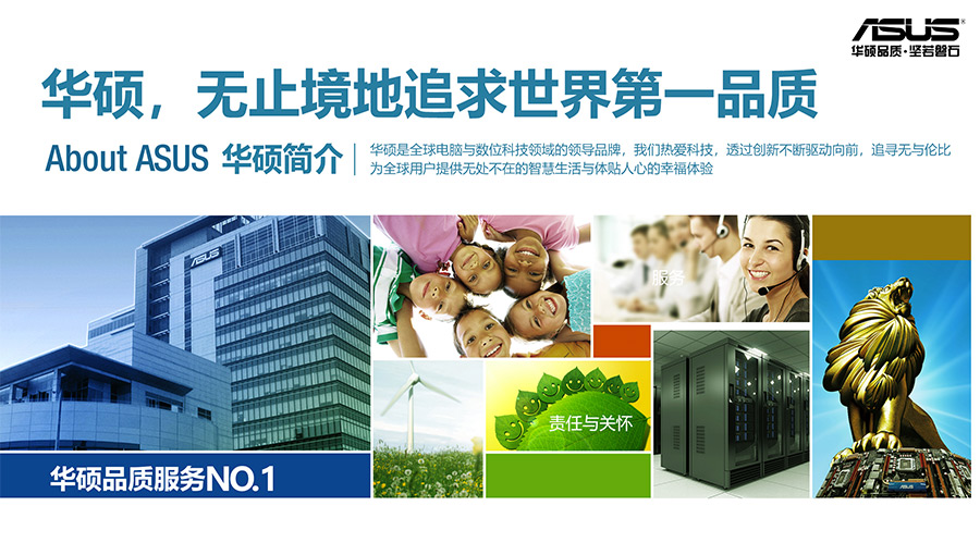 人文的華碩——華碩設計思維始于以人為本,展現出杰出的品質和無與倫比的創(chuàng)新精神,堅持將每件事做到極致。成立以來,華碩人秉承謙、誠、勤、敏、勇五徳,著眼未來,通過創(chuàng)新不斷驅動向前,追求卓越勇于接受挑戰(zhàn),形成了與眾不同的企業(yè)文化。經營理念上,堅持培育、珍惜、關懷員工,讓華碩人盡情地發(fā)揮自身潛力;堅守誠信、勤儉、崇本、務實的正道;堅持不懈追求更高的品質、速度、服務、創(chuàng)新、成本,立志以綠色科技為人類社會環(huán)境真正做出貢獻。