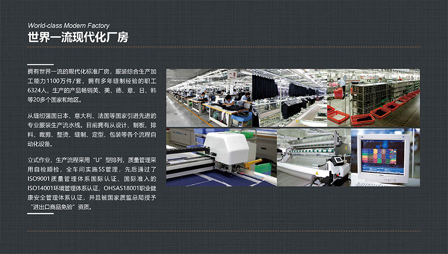 多年來,大楊集團(tuán)深耕主業(yè)、堅守實業(yè),積極開拓國內(nèi)外高端服裝市場,年服裝綜合生產(chǎn)加工能力1100萬件/套,其中年定制服裝生產(chǎn)數(shù)量穩(wěn)居全球第一。年西服出口量600萬件/套,連續(xù)多年排名全國第一。先后被評為世界服裝行業(yè)五百強(qiáng)企業(yè)、全國服裝行業(yè)十強(qiáng)/百強(qiáng)企業(yè)、國家重點扶持的中國名牌出口企業(yè)、國家級重合同守信譽(yù)單位、國家級服務(wù)型制造示范企業(yè)、國家重點培育紡織服裝百家品牌、遼寧省數(shù)字化轉(zhuǎn)型標(biāo)桿企業(yè),榮獲全國五一勞動獎狀、全國文明單位、全國紡織行業(yè)先進(jìn)集體、全國抗擊新冠肺炎疫情先進(jìn)民營企業(yè)、省長質(zhì)量獎等稱號,入選“中國服裝智能制造技術(shù)創(chuàng)新戰(zhàn)略聯(lián)盟”創(chuàng)始會員。同時,大楊集團(tuán)還在同行業(yè)中率先通過“AAA級兩化融合管理體系”評定,以及ISO9001質(zhì)量管理體系國際認(rèn)證、國際準(zhǔn)入的ISO14001環(huán)境管理體系認(rèn)證、ISO45001職業(yè)健康安全管理體系認(rèn)證。