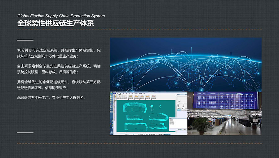 大楊集團(tuán)堅持以“打造世界最強(qiáng)服裝定制平臺”為目標(biāo),重點打造數(shù)字化柔性智能定制工廠,以自主開發(fā)的Ustyylit(優(yōu)思達(dá))服裝定制工業(yè)互聯(lián)網(wǎng)平臺為依托,以生產(chǎn)線的數(shù)字化改造為手段,實現(xiàn)多品種、小批量、高品質(zhì)、快速反應(yīng)的定制化生產(chǎn)模式。大楊集團(tuán)現(xiàn)已擁有7家智能化生產(chǎn)工廠、40條智能化生產(chǎn)線。其中,自主研發(fā)的“智能懸掛式高速分揀與存儲系統(tǒng)”榮獲“中國服裝行業(yè)科技進(jìn)步獎一等獎”。同時,“支持深度定制與即時體驗的服裝行業(yè)工業(yè)互聯(lián)網(wǎng)平臺”項目,入選工信部2020年度新型信息消費(fèi)示范項目,以及2022年工業(yè)互聯(lián)網(wǎng)平臺創(chuàng)新領(lǐng)航應(yīng)用案例,被授予中國紡織行業(yè)數(shù)字化轉(zhuǎn)型勞動競賽先進(jìn)單位。