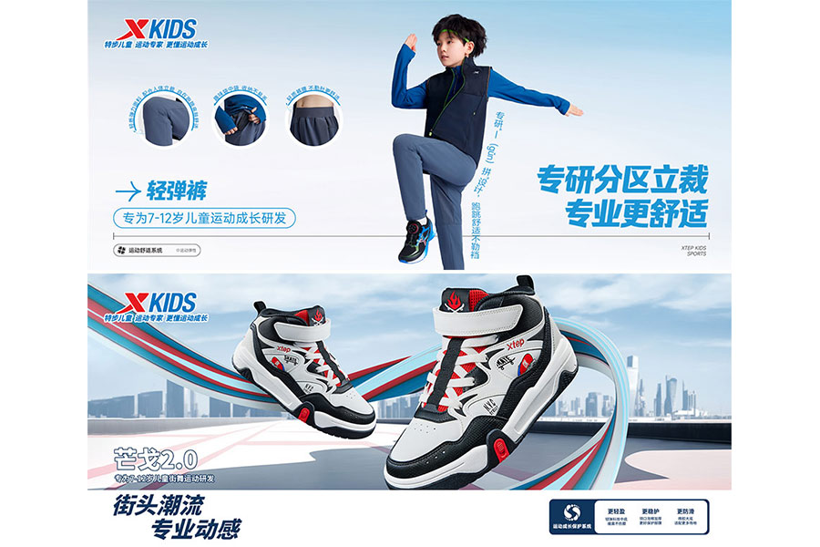 多年來,特步兒童在成長中,變革傳統(tǒng)鞋服企業(yè)的運營理念,特步兒童整合產(chǎn)業(yè)資源、規(guī)劃跨行業(yè)發(fā)展戰(zhàn)略、積極創(chuàng)造行業(yè)全新的品牌推廣模式、多元化的商品開發(fā)、科學的渠道規(guī)劃和創(chuàng)新的店鋪分級運營模式,并加大研發(fā)力度滿足新時代兒童消費者需求,取得了一定的市場地位。2023年,特步兒童推出特步兒童運動專家,更懂運動成長的全新品牌定位,聚焦校園運動場景,為中國兒童提供更好的運動裝備,成為專業(yè)校園運動的引領者。