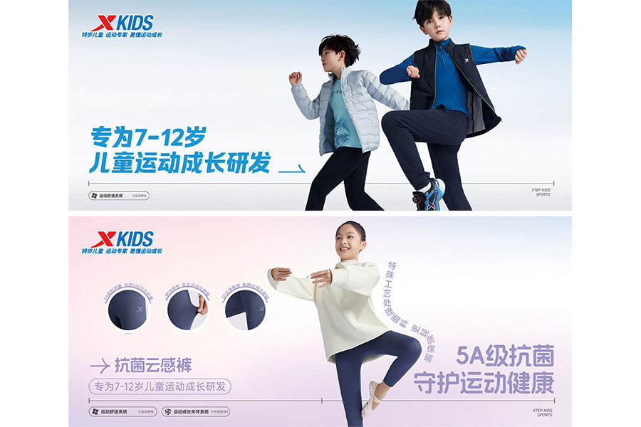 主要產(chǎn)品:特步兒童童鞋、童裝、兒童配件