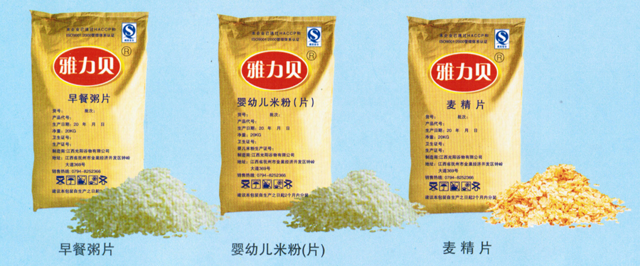 光陽公司系列產(chǎn)品有金禾營養(yǎng)麥片、金禾豆奶粉、金禾速食糊、嬰幼兒米片等。