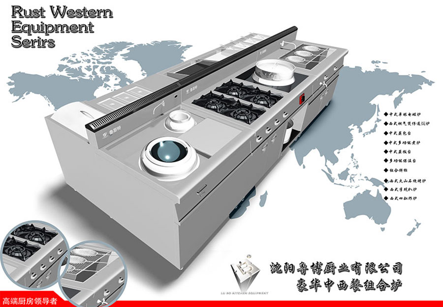 主要產(chǎn)品:盛京魯博品牌蒸飯車、炒菜灶、工作臺、保溫菜臺、貨架、開水器、排煙罩、冰柜