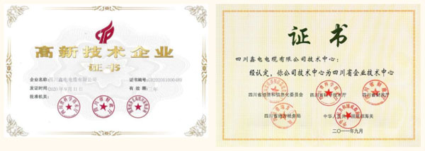 憑借先進(jìn)的研發(fā)硬件設(shè)施條件和高素質(zhì)研發(fā)人才隊(duì)伍,鑫電電纜獲評“國家高新技術(shù)企業(yè)”、“國家和四川省知識(shí)產(chǎn)權(quán)優(yōu)勢培育企業(yè)”、“四川省級(jí)企業(yè)技術(shù)中心”、“成都市院士(專家)創(chuàng)新工作站”以及“成都環(huán)保型電纜工程技術(shù)研究中心”。