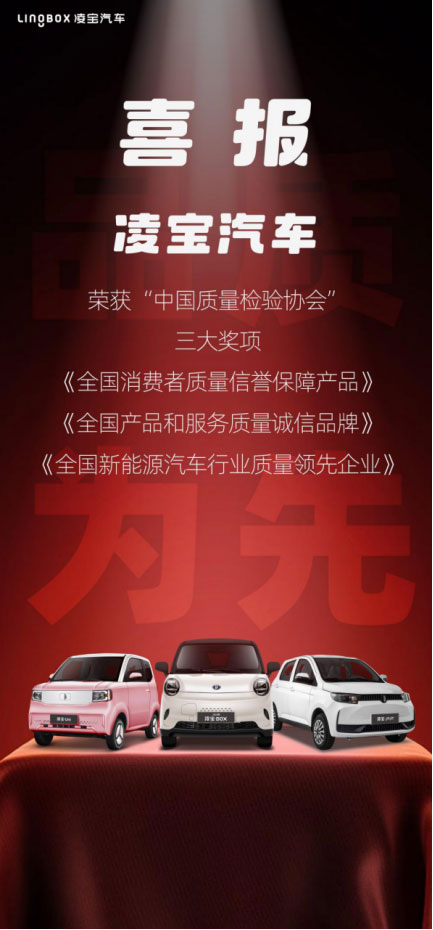 誠信為本,質(zhì)量為先。近日,凌寶汽車摘得中國質(zhì)量檢驗協(xié)會“全國消費者質(zhì)量信譽保障產(chǎn)品”“全國產(chǎn)品和服務質(zhì)量誠信品牌”“全國新能源汽車行業(yè)質(zhì)量領(lǐng)先企業(yè)”三項大獎,為今年的圓滿收官畫上了濃墨重彩的一筆。