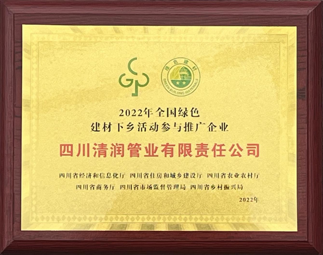 “清潤(rùn)”自成立以來(lái),便以“打造安全的城市地下生命線”為己任,先后為農(nóng)飲工程、四川大學(xué)、西南民族大學(xué)、第31屆世界大學(xué)生夏季運(yùn)動(dòng)會(huì)場(chǎng)館等項(xiàng)目供應(yīng)了一系列的優(yōu)質(zhì)給水管材管件產(chǎn)品,得到了市場(chǎng)廣大客戶和社會(huì)各界的一致肯定。公司先后獲得了“四川名牌”、成都市市級(jí)守合同重信用企業(yè)稱號(hào),入選《全國(guó)農(nóng)村飲水安全工程材料設(shè)備產(chǎn)品信息年報(bào)》、《成都市地方產(chǎn)品配套目錄》,信用等級(jí)AA級(jí),成為中國(guó)塑料加工工業(yè)協(xié)會(huì)塑料管道專業(yè)委員會(huì)理事單位、中國(guó)工業(yè)防腐蝕技術(shù)協(xié)會(huì)、四川燃?xì)鈪f(xié)會(huì)等協(xié)會(huì)會(huì)員單位。2022年,在全國(guó)綠色建材產(chǎn)品四川站啟動(dòng)會(huì)上,四川清潤(rùn)管業(yè)還作為優(yōu)秀代表企業(yè)獲得授牌。