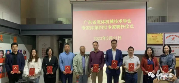 2023年3月11日,中聯泵業(yè)董事長、湖南省五金機電商會會長潘世群先生被聘任為廣東省流體機械技術學會專家?guī)斓谒呐夹g專家。