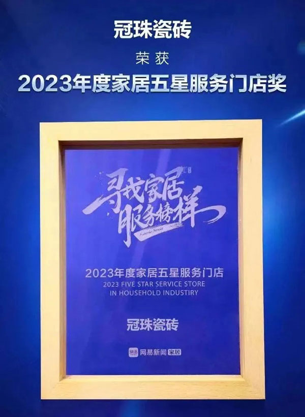奪冠!冠珠瓷磚榮獲2023“年度家居行業(yè)服務(wù)榜樣”、“年度家居五星服務(wù)門店獎”