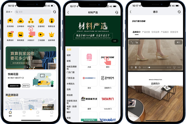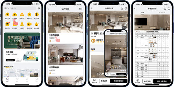 客戶(hù)想看整裝樣板間?不一定要去線(xiàn)下展館,一部手機(jī)就能逛夠癮。在金螳螂家APP“云樣板間”里,就可720云VR觀看各個(gè)空間的效果,里面可查看超詳細(xì)的空間材料配置表,都是優(yōu)質(zhì)大牌產(chǎn)品,還能隨時(shí)隨地針對(duì)產(chǎn)品進(jìn)行在線(xiàn)咨詢(xún),并按照戶(hù)型預(yù)估樣板間設(shè)計(jì)報(bào)價(jià)。