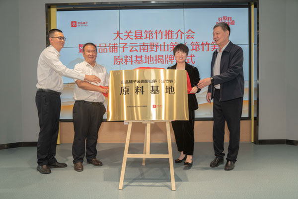 4月26日,中國(guó)食品工業(yè)協(xié)會(huì)副秘書(shū)長(zhǎng)徐堅(jiān),中共大關(guān)縣委常委、縣人民政府常務(wù)副縣長(zhǎng)張興,云南省農(nóng)業(yè)科學(xué)院農(nóng)產(chǎn)品加工研究所副所長(zhǎng)蘇火生,良品鋪?zhàn)庸煞萦邢薰靖笨偛?、供?yīng)鏈中心負(fù)責(zé)人劉玲出席“良品鋪?zhàn)釉颇弦吧焦S(筇竹筍)原料基地”揭牌儀式。
