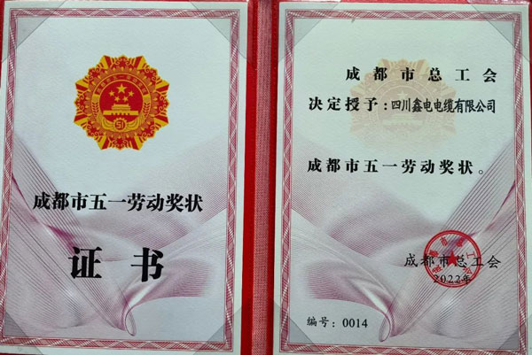 鑫電電纜榮獲“成都市五一勞動獎狀”!