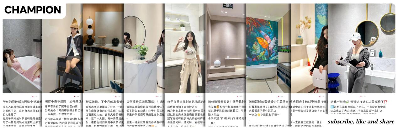 線上消費的猛攻之下,冠軍也正在積極開展“小紅書”、“抖音”等新媒體平臺模式的布局,以適應新型消費模式,與時俱進,搶占線上新賽道。