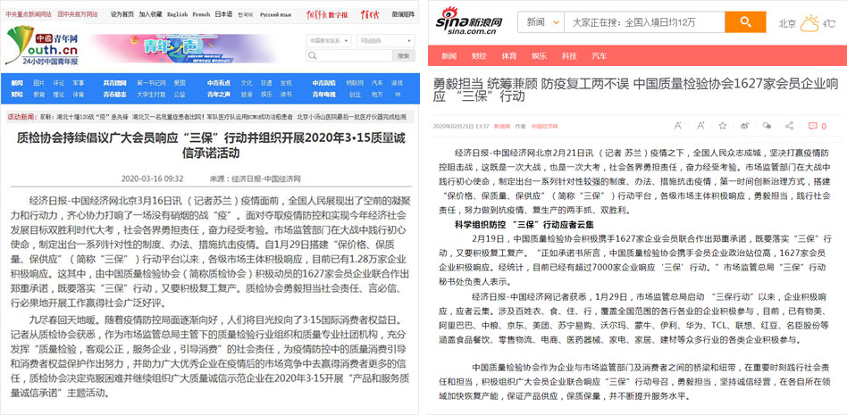 新浪網(wǎng)《質(zhì)檢協(xié)會(huì)持續(xù)倡議廣大會(huì)員響應(yīng)“三保”行動(dòng)并組織開展2020年3·15質(zhì)量誠(chéng)信承諾活動(dòng)》