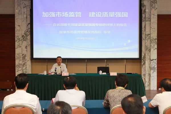 在我國第40個全國“質(zhì)量月”到來之際,9月1日,由中共中央組織部、中國浦東干部學(xué)院和國家市場監(jiān)督管理總局共同舉辦的“省部級干部建設(shè)質(zhì)量強國專題研討班”在滬開班,這也是繼兩年前在京舉辦首個省部級干部“全面實施質(zhì)量強國戰(zhàn)略專題研討班”之后的第二個省部級質(zhì)量強國戰(zhàn)略專題研討班。市場監(jiān)管總局局長、黨組副書記張茅作為首位授課人,在專題研討班上以“加強市場監(jiān)管 建設(shè)質(zhì)量強國”為題做了專題講座。
